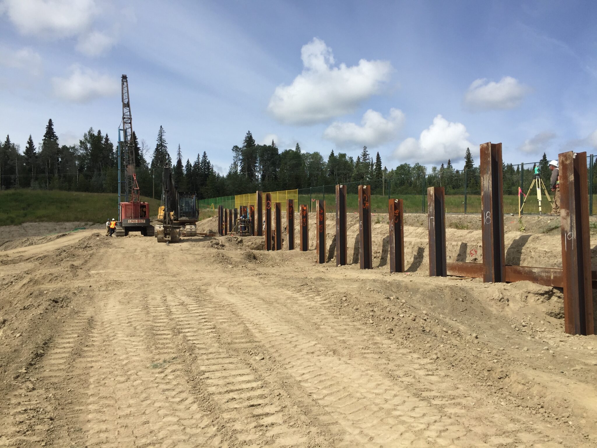 Our scope included analysis and design of the steel piles, determination of pile spacing and embedment depth, and coordination of the precast concrete lagging system.